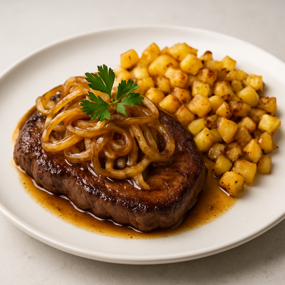 Biff med Lök är en av de där rätterna som har vandrat genom svenska kök i generationer. Den hör hemma i vår älskade husmanskost och har serverats på såväl vardagsbord som under festligare tillfällen. Ursprungligen var det ett sätt att ta tillvara på enkla råvaror och skapa något värmande och mättande – kött, lök och smör i sin renaste form. Löken ger sötma och djup, biffen står för umami och sälta, och smöret binder ihop allt till en len, smörig smakbomb.